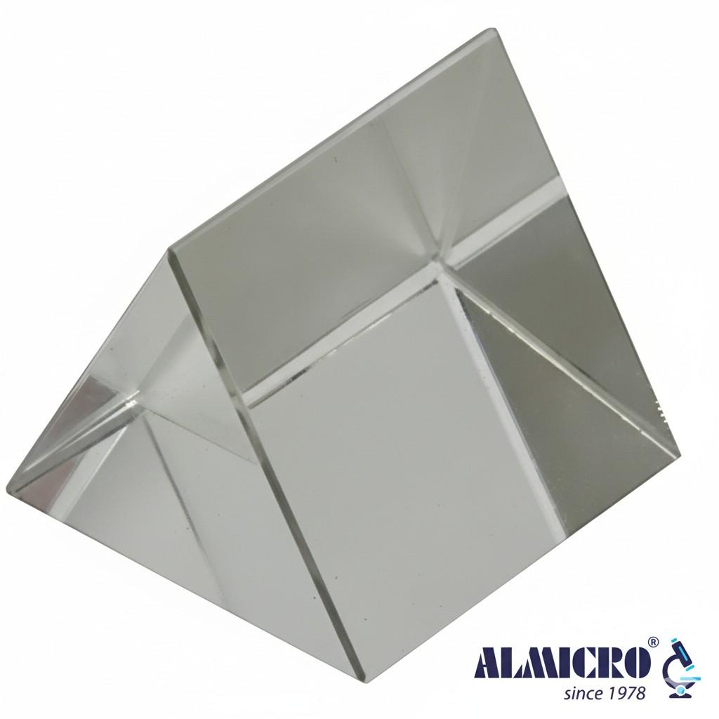 A transparent optical object that refracts and disperses light.A prism is used in optics experiments to demonstrate refraction and dispersion. Students observe the splitting of white light into colors and measure angles of deviation.