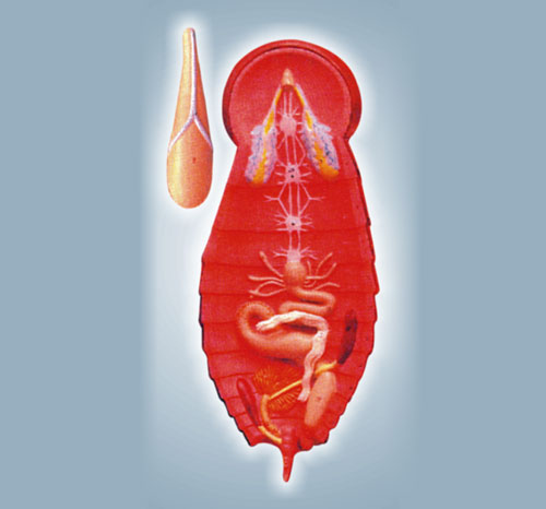 • Enlarged, dissection showing all internal parts. On base. Numbered with English Key Card.
