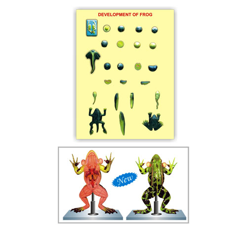 • Set of 24 models showing the various stages of the development of frog, from egg to adult. On wooden board. Numbered with English Key Car.