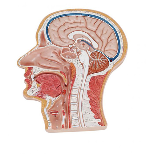 Life size representation of the superficial and the internal structures of the head and neck. This relief model shows all relevant structures of the human head in great detail. Mounted on board. With Key Card.